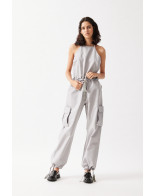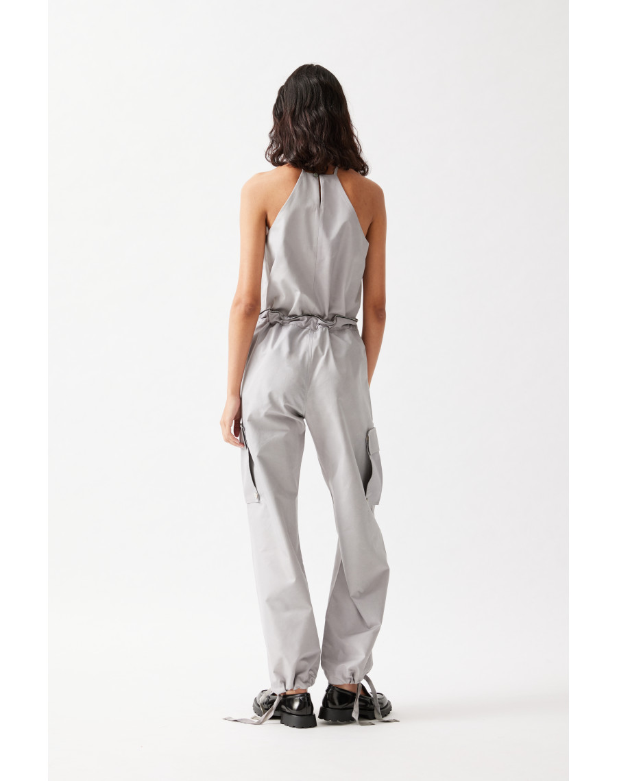 Don't forget to save your customization to be able to add to cartWorkwear-cut trouser with patch pockets on the front and 4 buttons on the external side of each leg to attach removable pockets, for a cargo-like look. Drawstring around the waist for adjustable width allows wearing it both high or low waist. Drawstring at the hem of both legs for a sportier or more classic look.