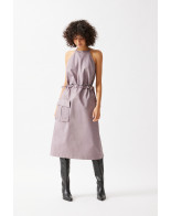 A-line minimal midi skirt with 4 buttons on the front-right side to host one removable pocket, for a sportier twist. This skirt features a drawstring around the waist to give you freedom to adjust its width and to wear it at both with high or low waist and - why not? - even as a dress.