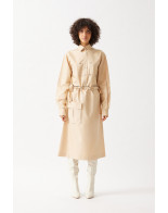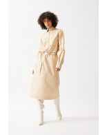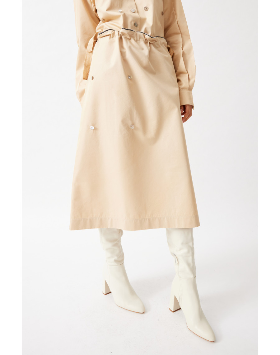 A-line minimal midi skirt with 4 buttons on the front-right side to host one removable pocket, for a sportier twist. This skirt features a drawstring around the waist to give you freedom to adjust its width and to wear it at both with high or low waist and - why not? - even as a dress.