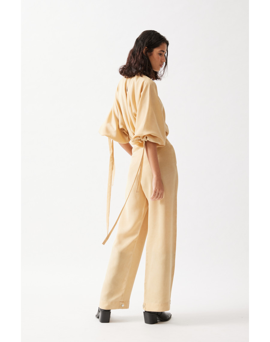 Don't forget to save your customization to be able to add to cartClassic trousers with frog system and buttons at waist level that allow closure and create two pleats on the front. The system of frogs and buttons present on the bottom hems of both legs also allow to wear the legs wide or closed at the ankle in a further game of pleats.