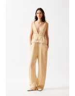 The Classy Trousers: Classic trousers with frog system and buttons at waist level that allow closure and create two pleats on the front. The system of frogs and buttons present on the bottom hems of both legs also allow to wear the legs wide or closed at the ankle in a further game of pleats.