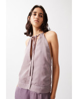 The Multiple Necklines Top: This top is created by four triangles, attached only to the bottom-end, that go up both on the front and on the back. Each of the four parts have a drawstring at the top, where you can attach either two separate straps on each side, or a single longer strap that connects them all. These solutions allow creating numerous necklines, even adding a strap around the waist.