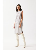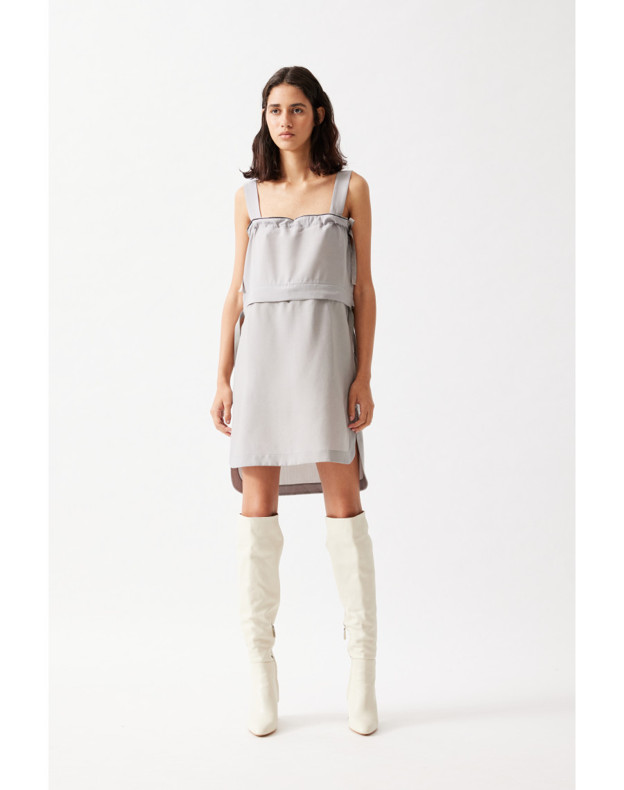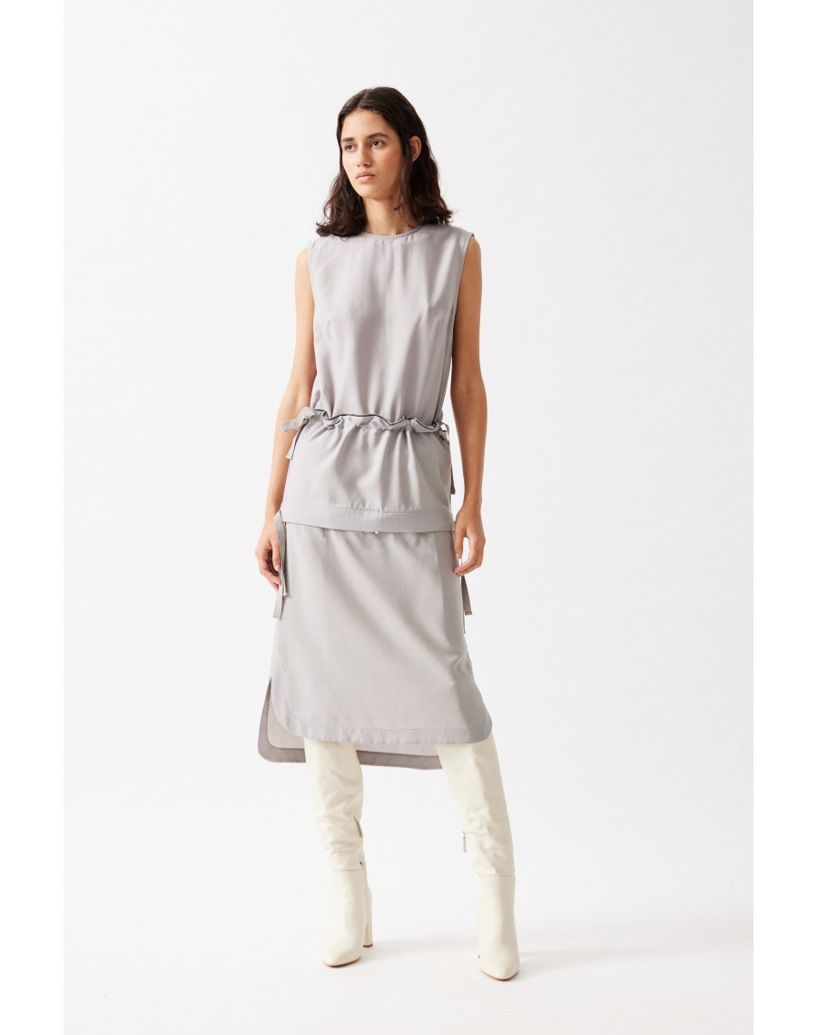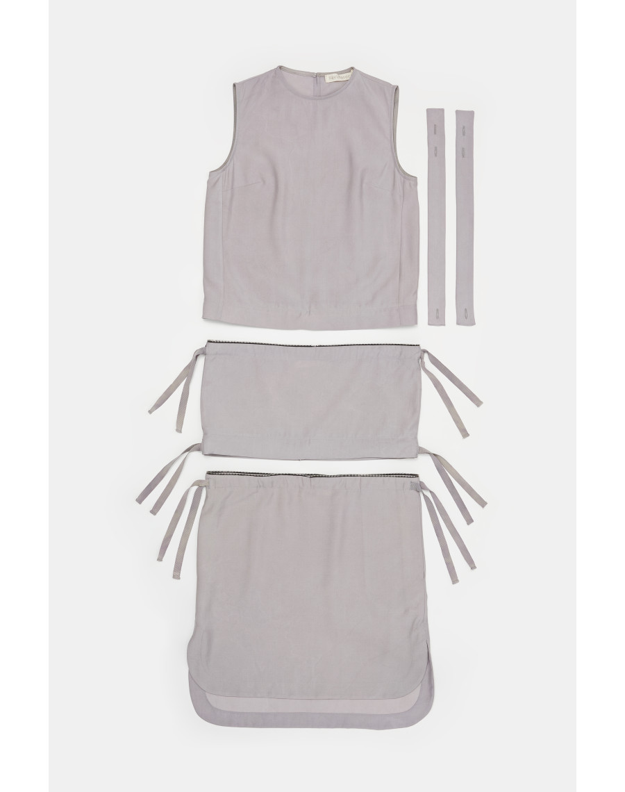 The hidden zippers allow you to attach the module and create different skirts, tops or dresses. The drawstring on the band and the skirt allows to wear each module alone adjusting the width. All the above comes in a small bag made with the same fabric as the modules.