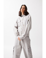 The Cargo Shirt w/ Removable Pockets: Inspired by the classical white shirt with minimal design, this version features two sets of mother-of-pearl buttons on the front, left and right, to host two removable pockets. Thanks to such buttons, the shirt can be wrap-top closed giving the garment a different stylish and sexy twist.