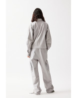 The Cargo Trousers w/ Removable Pockets: Workwear-cut trouser with patch pockets on the front and 4 buttons on the external side of each leg to attach removable pockets, for a cargo-like look. Drawstring around the waist for adjustable width allows wearing it both high or low waist. Drawstring at the hem of both legs for a sportier or more classic look.