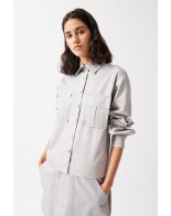The Cargo Shirt w/ Removable Pockets: Inspired by the classical white shirt with minimal design, this version features two sets of mother-of-pearl buttons on the front, left and right, to host two removable pockets. Thanks to such buttons, the shirt can be wrap-top closed giving the garment a different stylish and sexy twist.