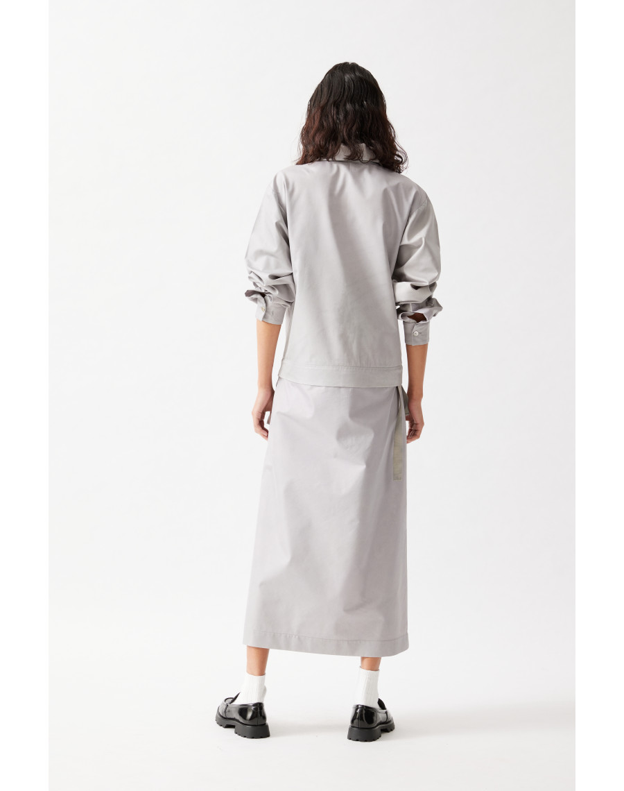 The Cargo Midi skirt w/ a Removable Pocket: A-line minimal midi skirt with 4 buttons on the front-right side to host one removable pocket, for a sportier twist. This skirt features a drawstring around the waist to give you freedom to adjust its width and to wear it at both with high or low waist and - why not? - even as a dress.