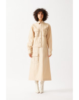 The Cargo Midi skirt w/ a Removable Pocket: A-line minimal midi skirt with 4 buttons on the front-right side to host one removable pocket, for a sportier twist. This skirt features a drawstring around the waist to give you freedom to adjust its width and to wear it at both with high or low waist and - why not? - even as a dress.