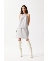 The Boxy Mini Skirt: Workwear inspired skirt, with two patch-pockets on the front. The drawstring around the waist gives freedom to adjust its width to wear it with both high or low waist.