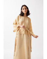 The Kimono Top: Top featuring wide sleeves with drawstring at each bottom: wear them wide open or closed, to create a balloon effect. Removable waist-belt to tighten the top and mark the waistline. A play of falling laces gives movement to this elegant top.