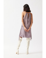 The Multiple Necklines Top: This top is created by four triangles, attached only to the bottom-end, that go up both on the front and on the back. Each of the four parts have a drawstring at the top, where you can attach either two separate straps on each side, or a single longer strap that connects them all. These solutions allow creating numerous necklines, even adding a strap around the waist.