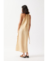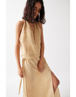 The Vent Midi Skirt: Flared midi-skirt with slit on the front-left side. The drawstring around the waist gives freedom to adjust its width to wear it with both high or low waist. The skirt comes with two straps that can be attached at the buttons inside the belt to wear it either as a dress or a top.