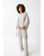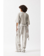 The Kimono Top: Top featuring wide sleeves with drawstring at each bottom: wear them wide open or closed, to create a balloon effect. Removable waist-belt to tighten the top and mark the waistline. A play of falling laces gives movement to this elegant top.