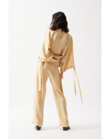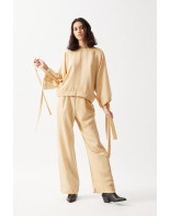 Don't forget to save your customization to be able to add to cartTop featuring wide sleeves with drawstring at each bottom: wear them wide open or closed, to create a balloon effect. Removable waist-belt to tighten the top and mark the waistline. A play of falling laces gives movement to this elegant top.